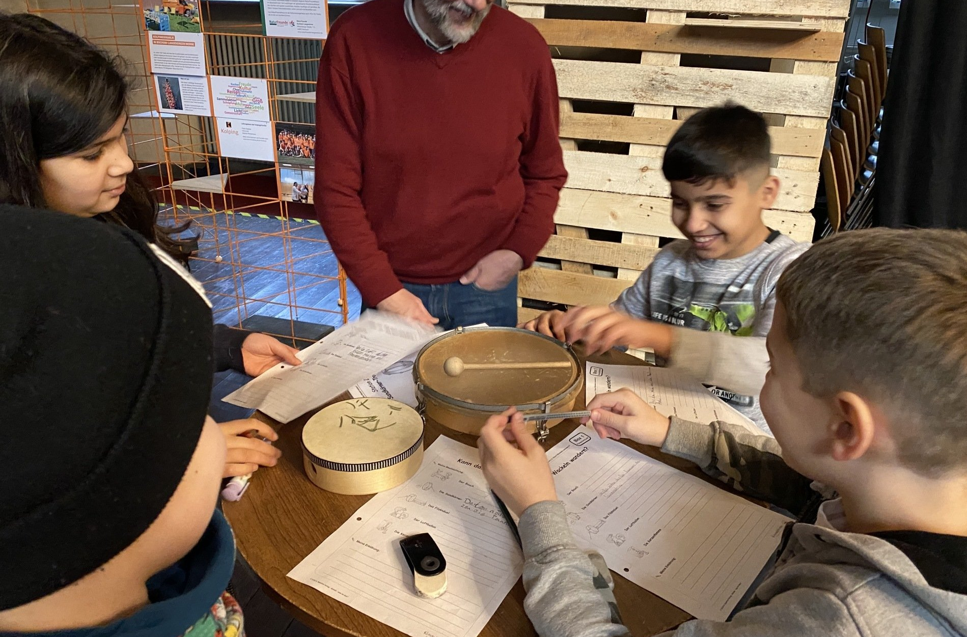 Uns hat die Station mit dem Backpapier sehr gut gefallen, man musste das Papier an die Lippen halten und dann sprechen, dann wurde es sehr laut.